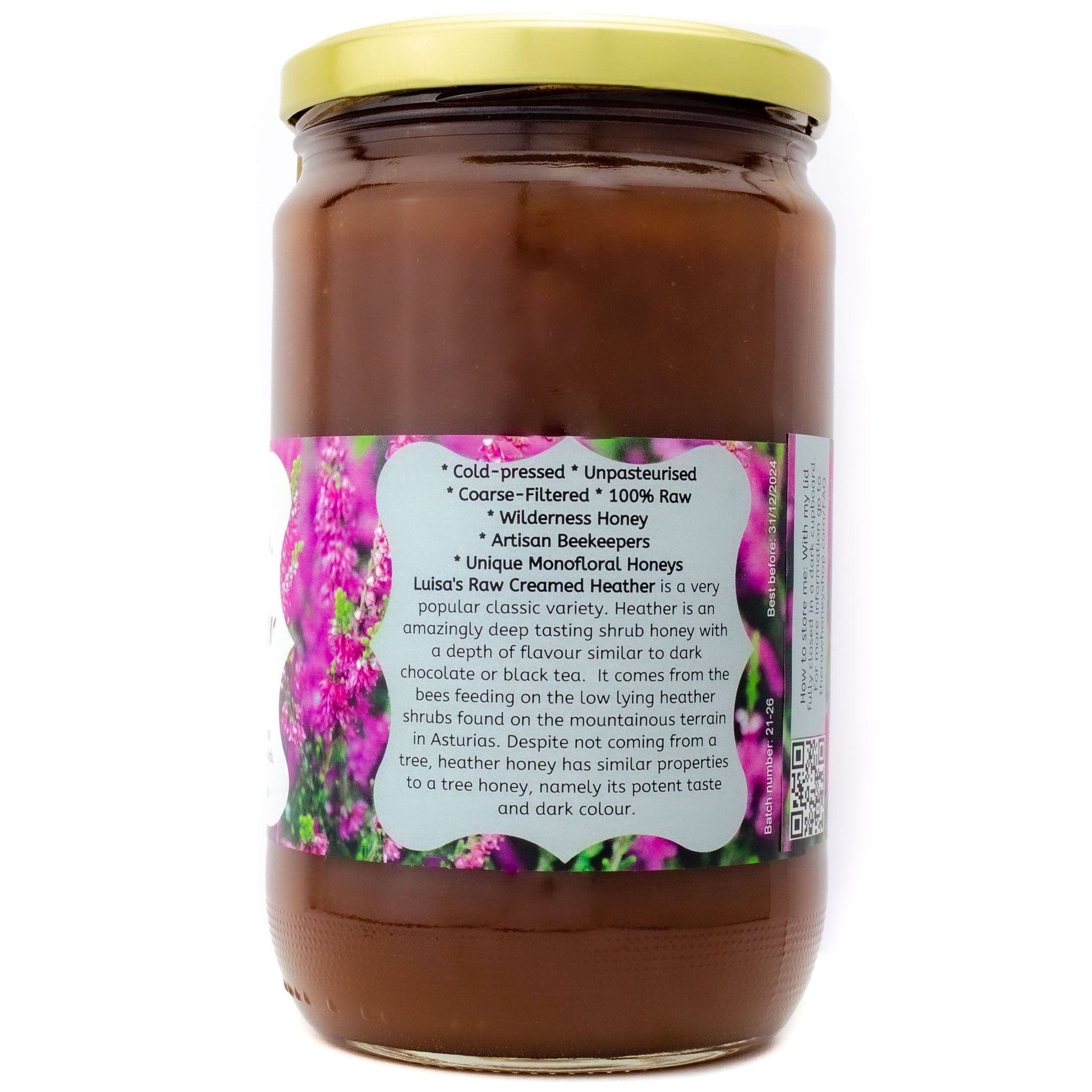 Mehr zum Geschmack: Luisas roher Heidehonig ist eine klassische Sorte. Sehr beliebt wegen seines herrlichen, tief erdigen Geschmacks, reichhaltig, aber nicht süßlich, balsamisch, aber nicht würzig. Er ist leicht bitter, wird aber durch eine ausgewogene Süße ergänzt.