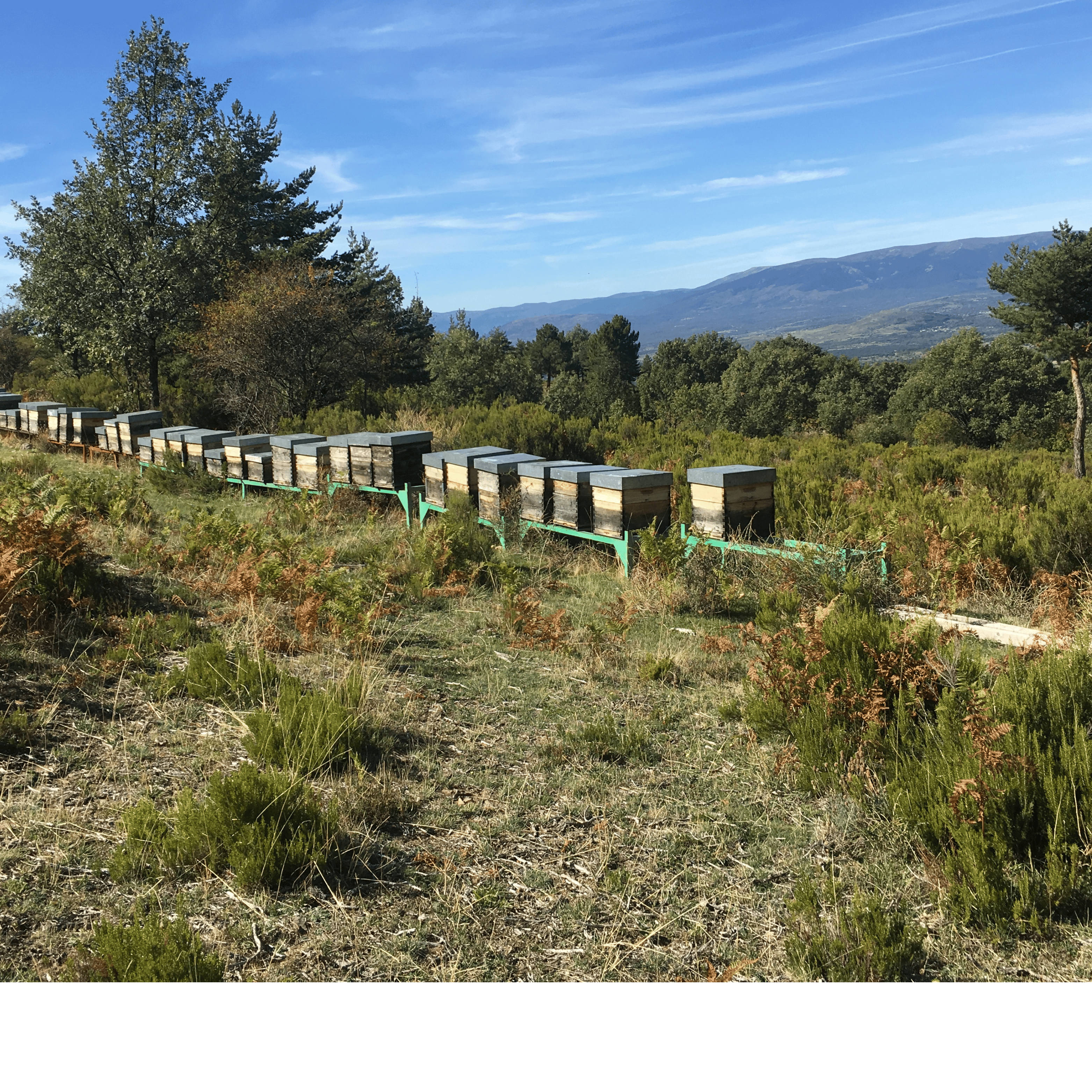 Wer produziert den Honig? Die Bienen von Antonio Simon, einem 4th Generation, der stolz darauf ist, Honig auf traditionelle Weise zu produzieren, ohne etwas hinzuzufügen oder wegzunehmen. Antonios Bienenstöcke befinden sich in den Bergen nördlich von Madrid.