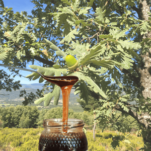 Weitere Fakten über Eichenhonig: Eichenhonig wird aus den Eicheln des Eichenbaums gewonnen. Die Bienen sammeln den süßen Nektar, den die Eicheln im Juli und August absondern, und erzeugen daraus eine einzigartige Honigart. Andere Arten von Baumhonig werden aus den Rückständen hergestellt, die von Blattläusen auf den Bäumen zurückbleiben, was beim Eichenhonig nicht der Fall ist. Die Bienen sammeln die süße Flüssigkeit direkt aus den Eicheln. Er ist in der Regel weniger süß, aber sehr ergiebig.