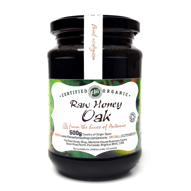 Antonio's Raw Oak Honig ist ein sehr tiefgründiger und reichhaltig schmeckender Baumhonig; er hat eine fruchtige Note sowie ein tiefes Holzaroma. Baumhonige sind in der Regel dunkel, haben einen kräftigeren Geschmack und setzen sich aufgrund ihres relativ geringen Glukosegehalts weniger schnell ab.