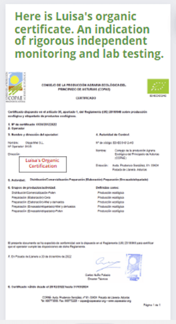 Woher kommt der Honig?: Diese Sorte Kastanienhonig stammt aus Kantabrien, einer weitgehend unberührten, wilden und vielfältigen Region im Norden Spaniens. Luisas Bienenstöcke stehen weit entfernt von Verschmutzungsquellen in den Nationalparks und sind jetzt biologisch zertifiziert.