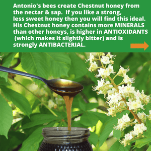 Antonios roher Bio-Kastanienhonig ist ein Baumhonig mit intensivem und malzigem Geschmack.