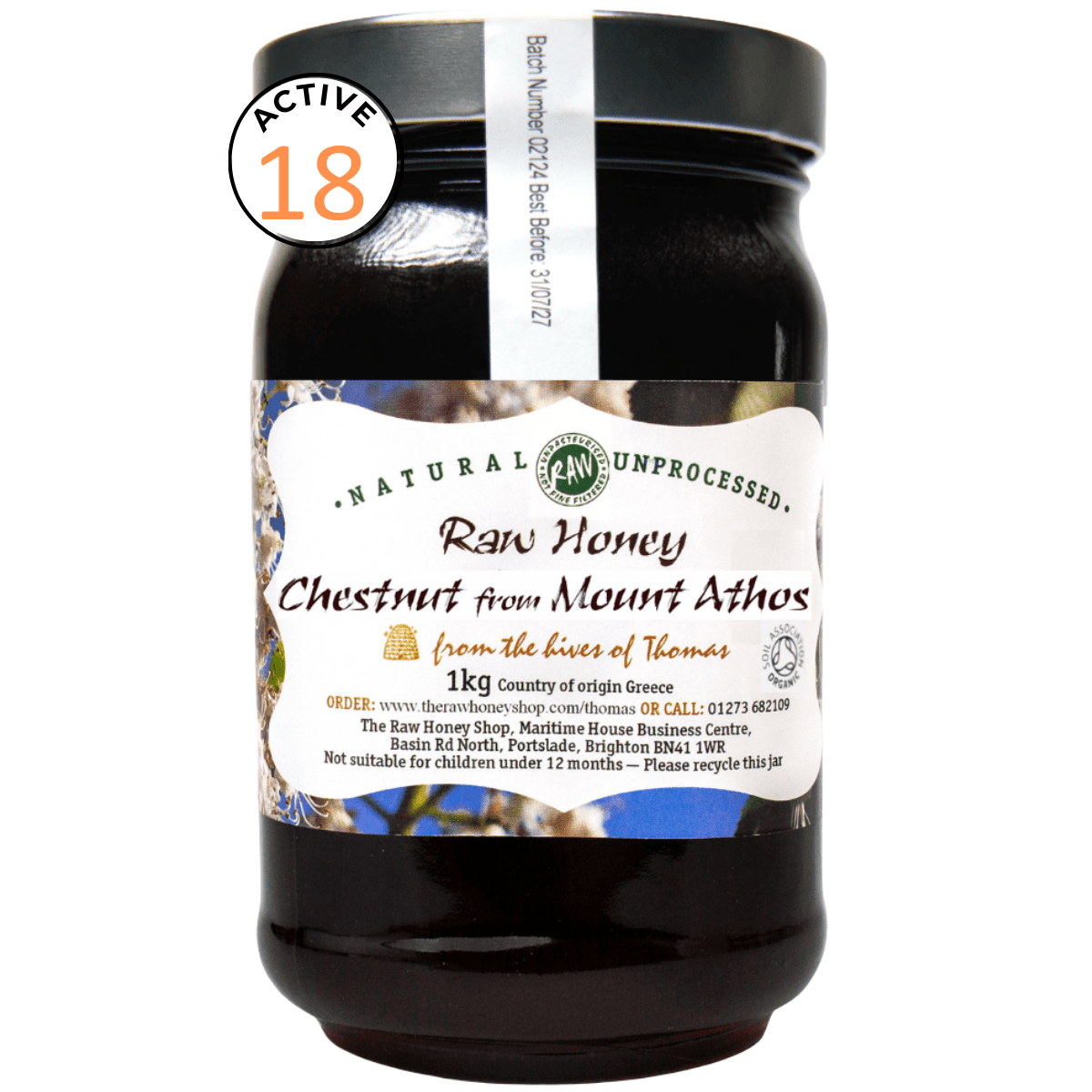 Raw Organic Greek Chestnut Honey from Mount Athos (Active 18)