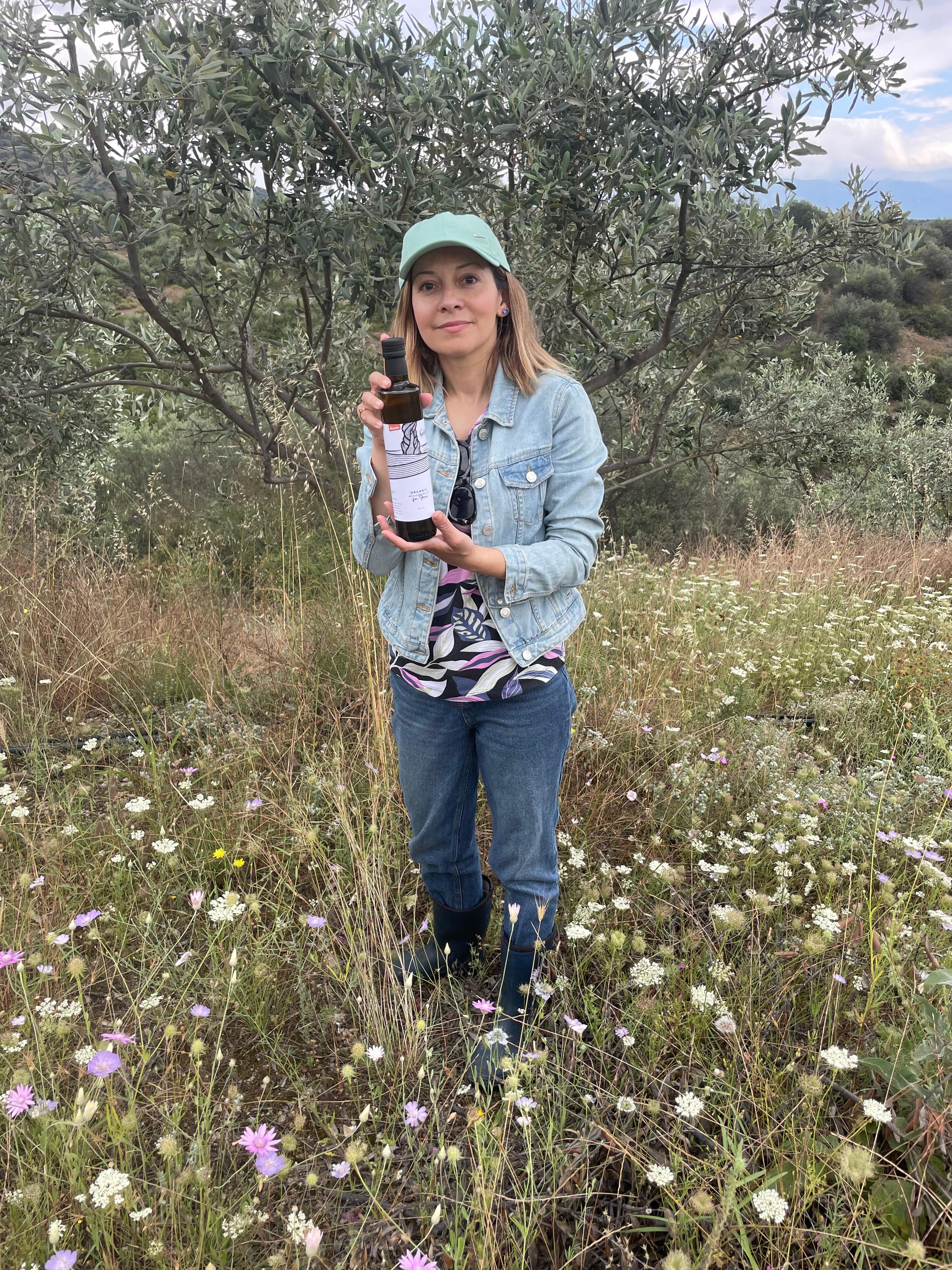 Her approach is holistic and hands-on: she harvests the olives by hand, ensuring the olives and trees are never harmed, and presses them within 24 hours to preserve their flavour and health benefits. The oil is stored in stainless steel and bottled in dark glass to maintain its exceptional quality.