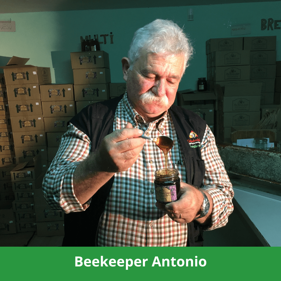 Sustainably Produced: Antonio, a 4th generation beekeeper, uses traditional organic methods, ensuring the purity and quality of each honey.
