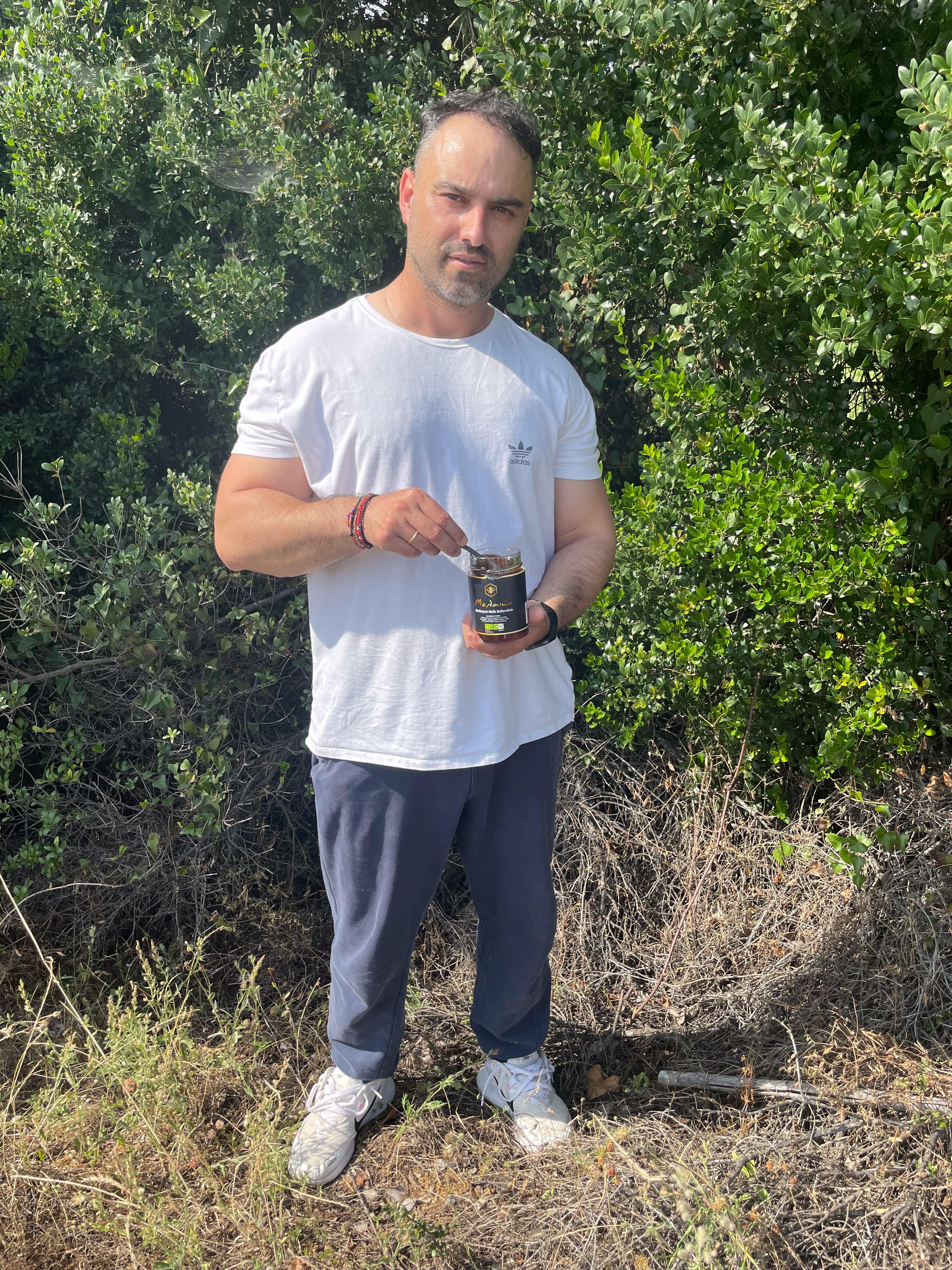 Kostas is one of a new generation of young beekeepers, deeply committed to organic principles, environmental care, and the well-being of his bees. His honey is more than just a product – it’s the result of a deep respect for nature and the bees that produce it. For Kostas, beekeeping is about balance: you must never take more from the land than you give back. You’ll find him tending his hives in the Peloponnese, a region in the far south of Greece, in places where nature still thrives in its purest form.