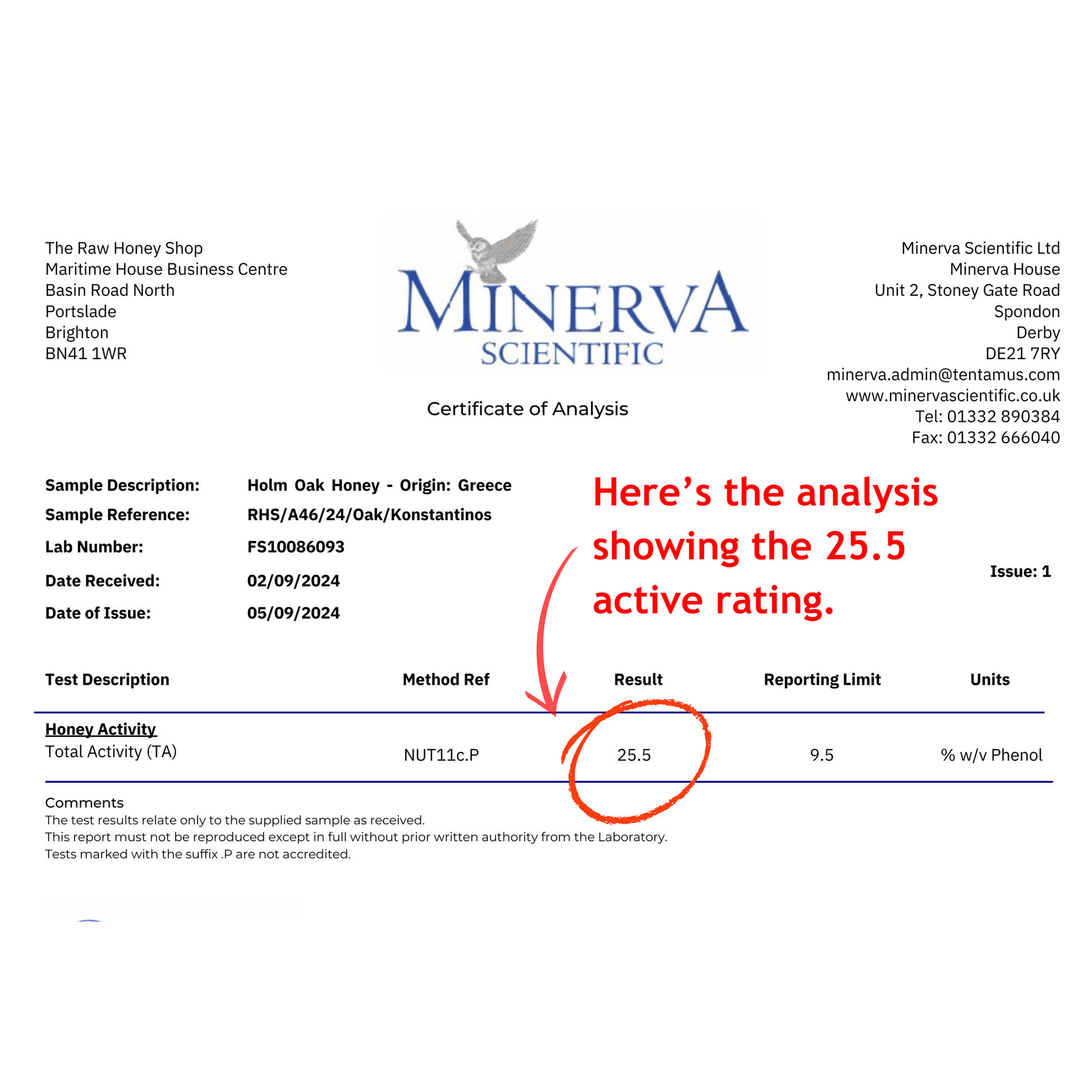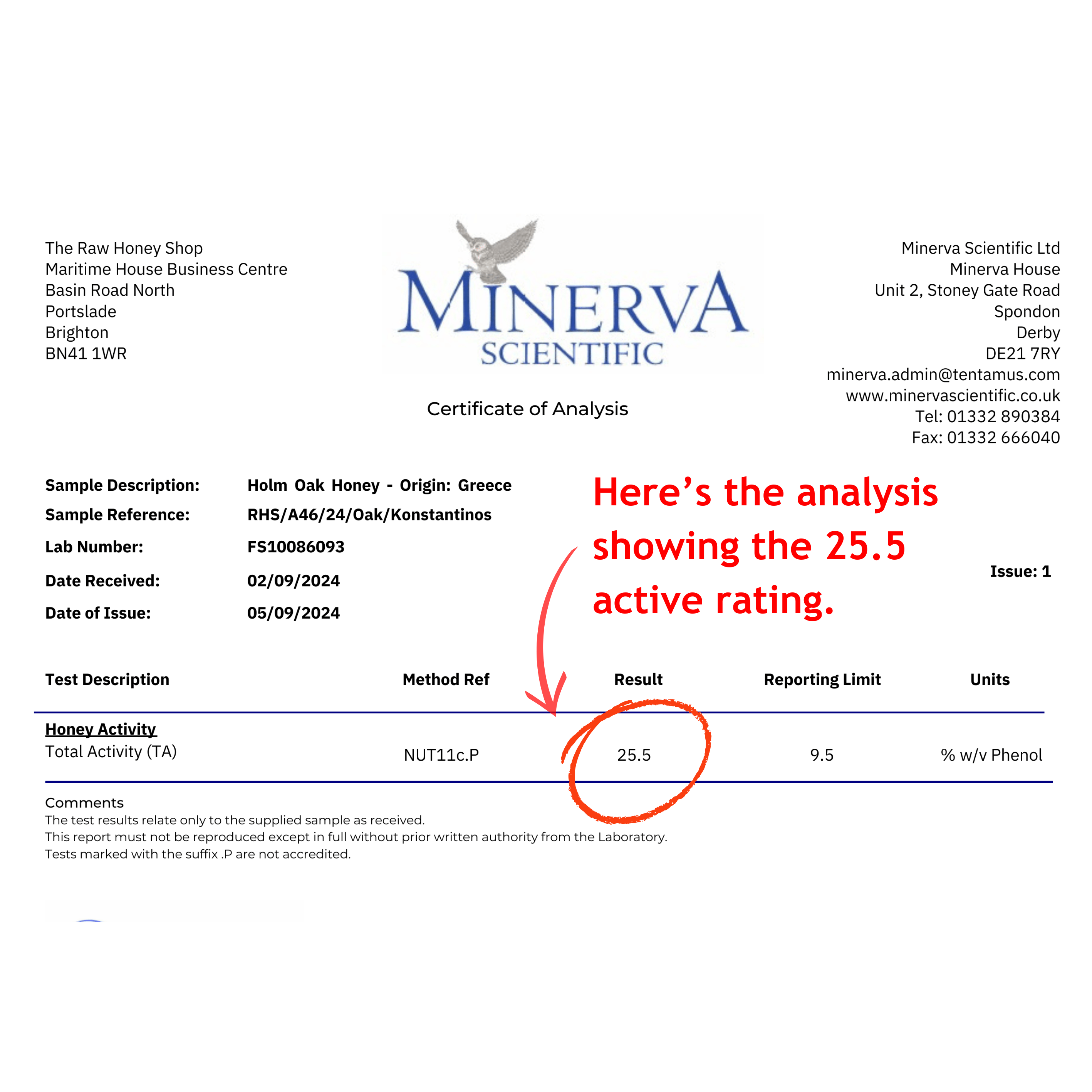 Raw Organic Greek Mediterranean (Holm) Oak - Active 27.5 Runny